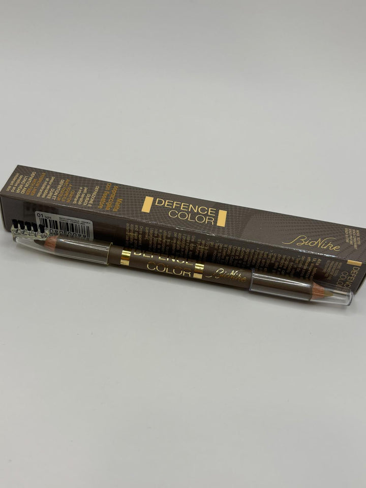 Matita sopracciglia temperabile doppia punta: lato 1 cera fissante trasparente, lato 2 matita riempimento colorata biondo caldo.